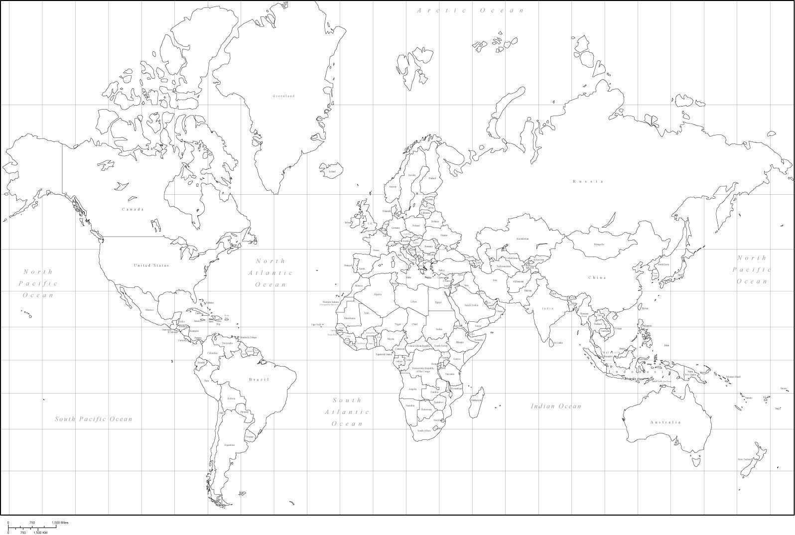 Black And White Map Of The World With Countries