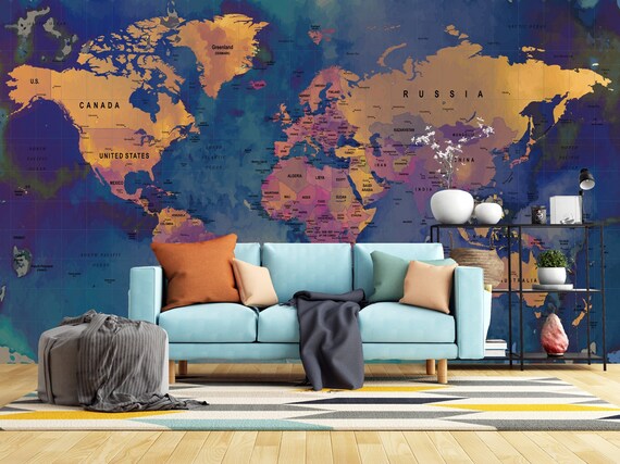 Customized Large World Map Wall Decal World Map Wallpaper World